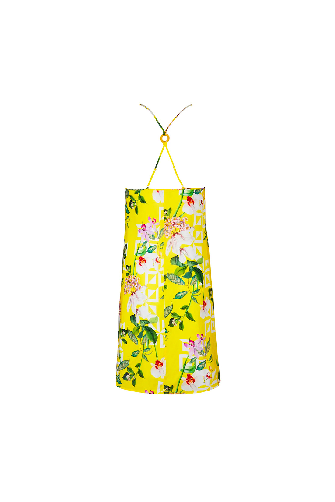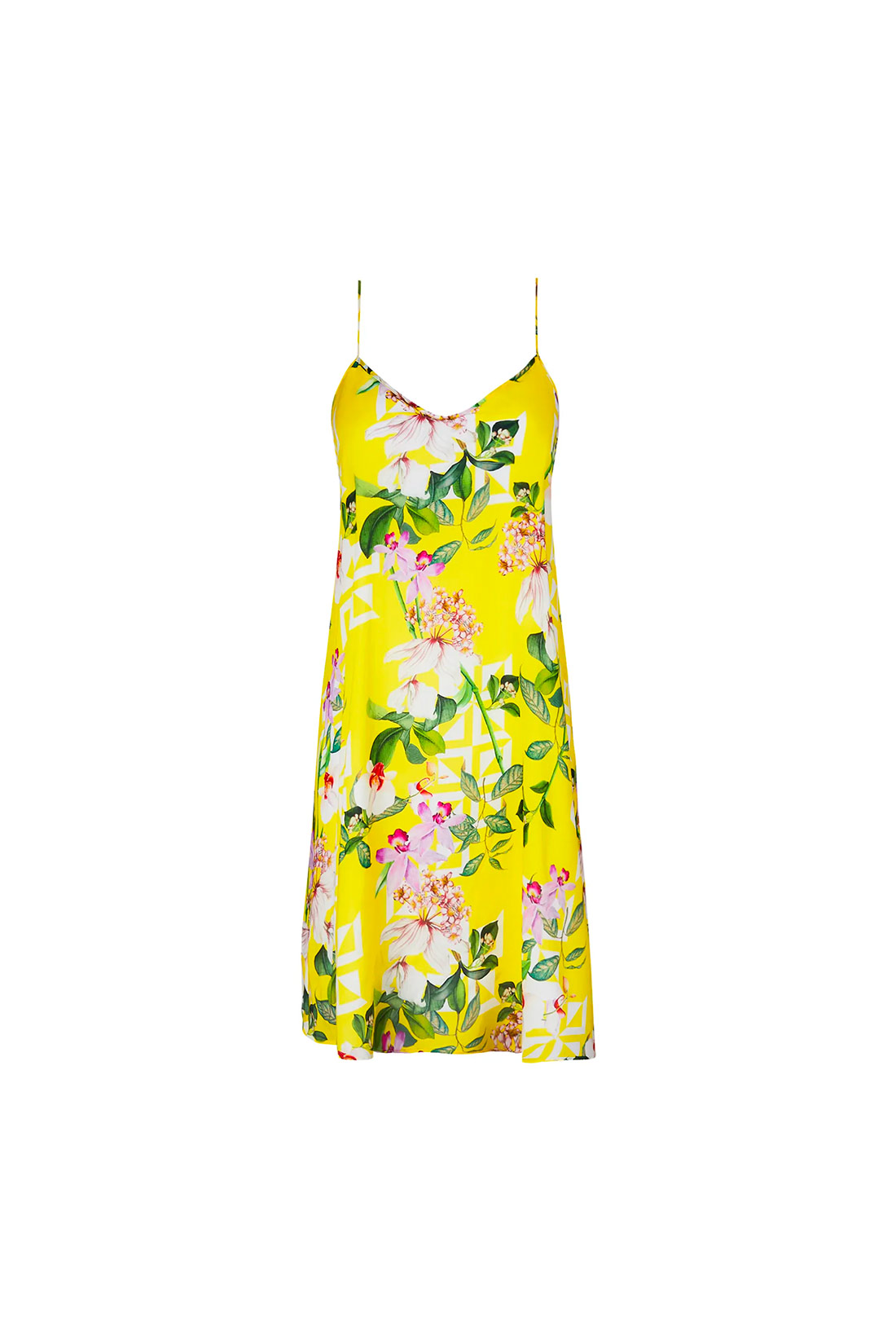 Caratteristiche: Abito corto Scollo a V Spalline regolabili In fantasia floreale colorata su base gialla Composizione e cura: 100% Viscosa Lavare a mano o con programma delicato, rete di protezione consigliata, non candeggiare e non centrifugare. Si raccomanda di asciugare all’ombra.