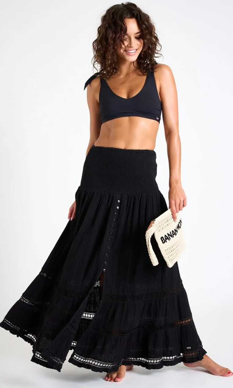 Abito lungo – Gonna Black con inserti in pizzo Banana Moon
