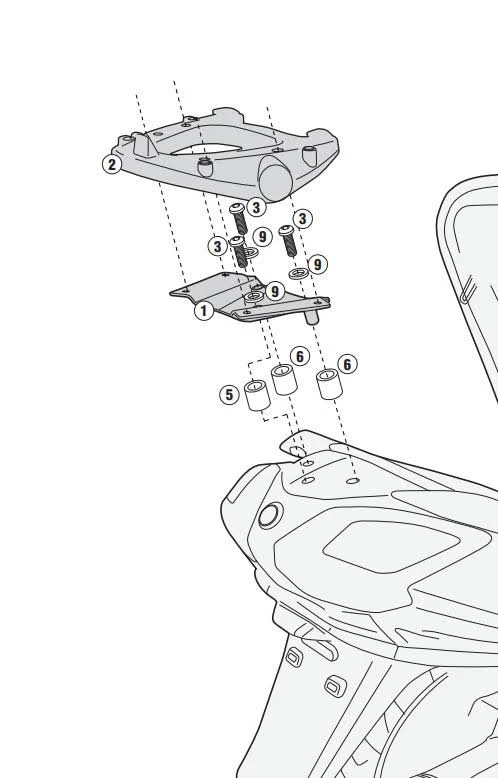 Attacco posteriore specifico per bauletto MONOKEY o MONOLOCK. Da abbinare alla piastra MONOKEY KM5, KM7, KM8A, KM8B, KM9A o KM9B, o alla MONOLOCK KM5M o KM6M. L’abbinamento con KM8A, KM8B, KM9A e KM9B non permette il montaggio di un kit luci stop sulla valigia e/o dispositivo per l’apertura telecomandata della valigia.
