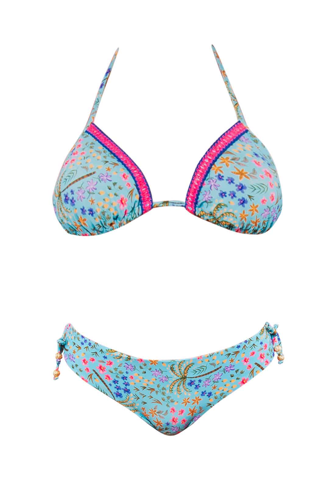 Bikini triangolo con slip laccetti fantasia fiori Verdissima