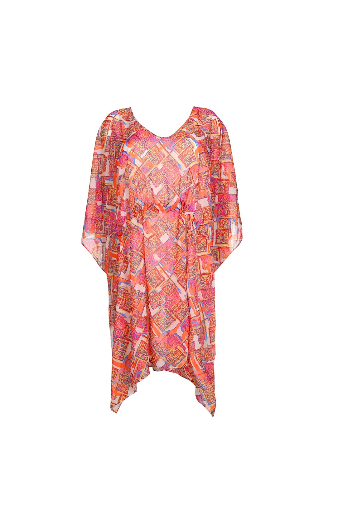 Caratteristiche: Caftano corto In fantasia Con coulisse in vita Scollo a V Composizione e cura: 100% Poliestere Lavare a mano o con programma delicato, non candeggiare e non centrifugare. Si raccomanda di asciugare all’ombra. Per maggiori informazioni sul prodotto contattare il numero Whatsapp 0362238044 !