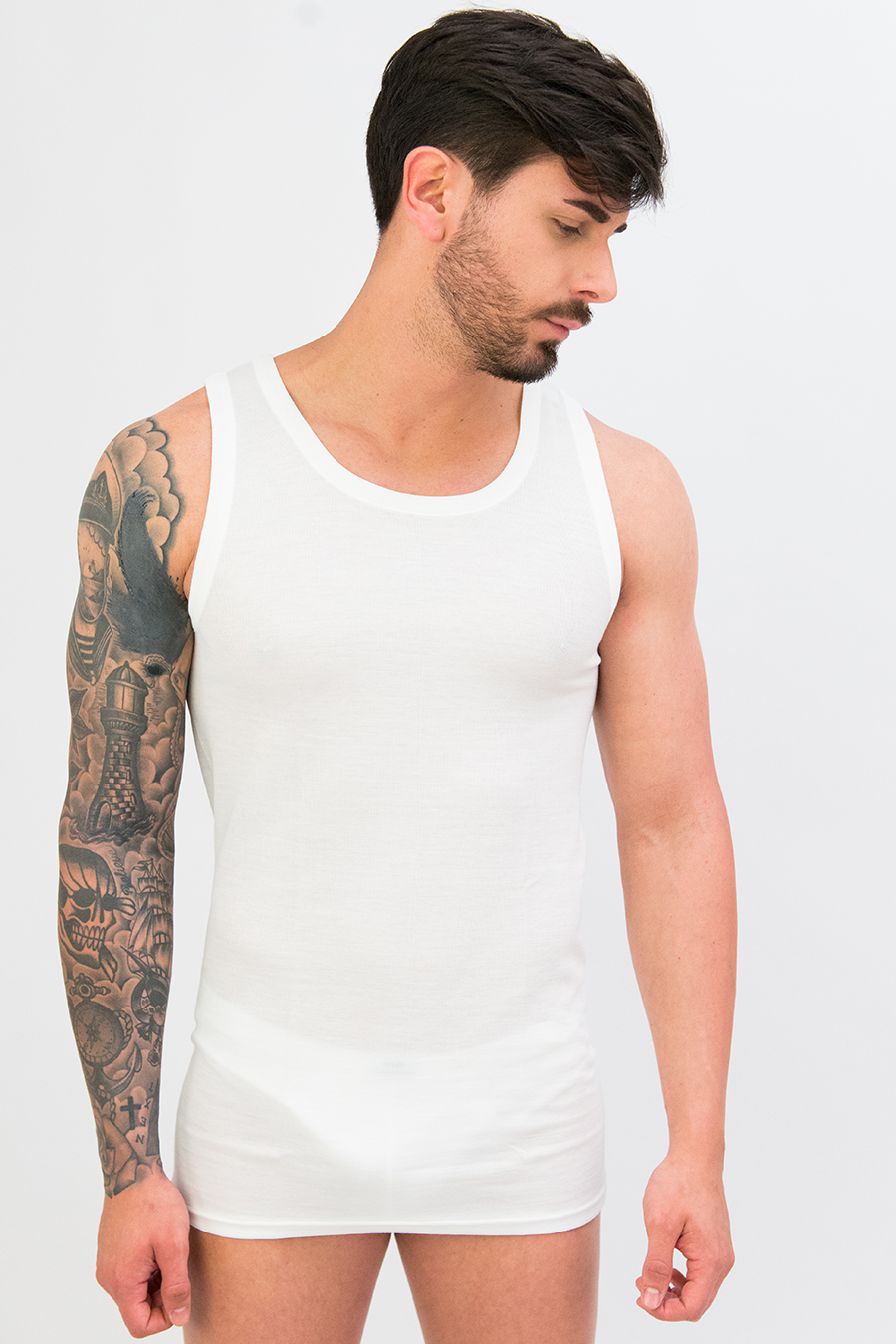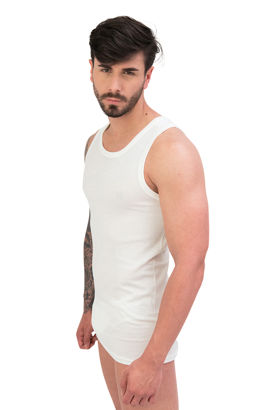 Canottiera per uomo, in dual cotone sulla pelle e lana fuori