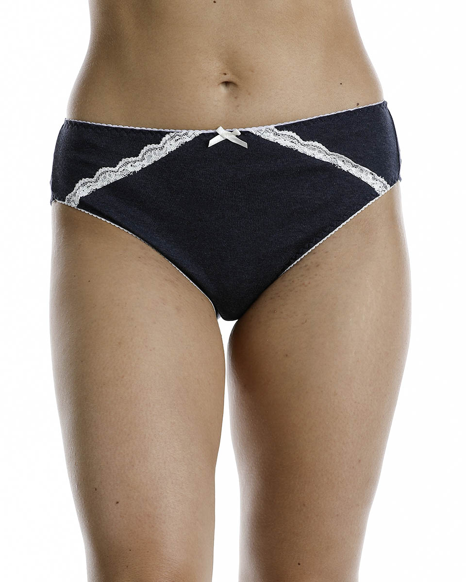 Confezione risparmio di 3 slip a fianco alto per donna in cotone naturale certificato Oekotex standard 100 per l’assenza di sostanze nocive.