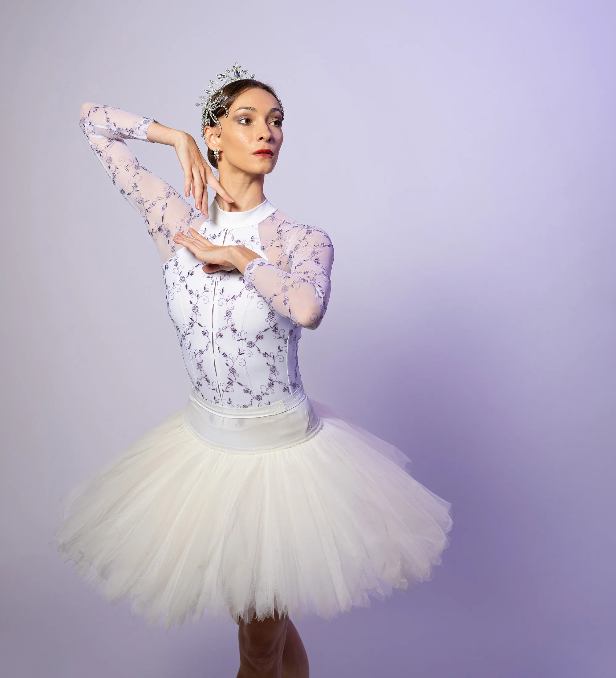 Inspired by the third part of Balanchines’s masterpiece Jewels. Like a precious gem, this leotard sparkles reflecting the distinguishing features of this ballet: the style, the great virtuosity and the great classical ballets of Russian dance – all elements to which the Mariinsky Theatre school owes its celebrity. 🤍 Dance leotard with long tulle sleeves […]