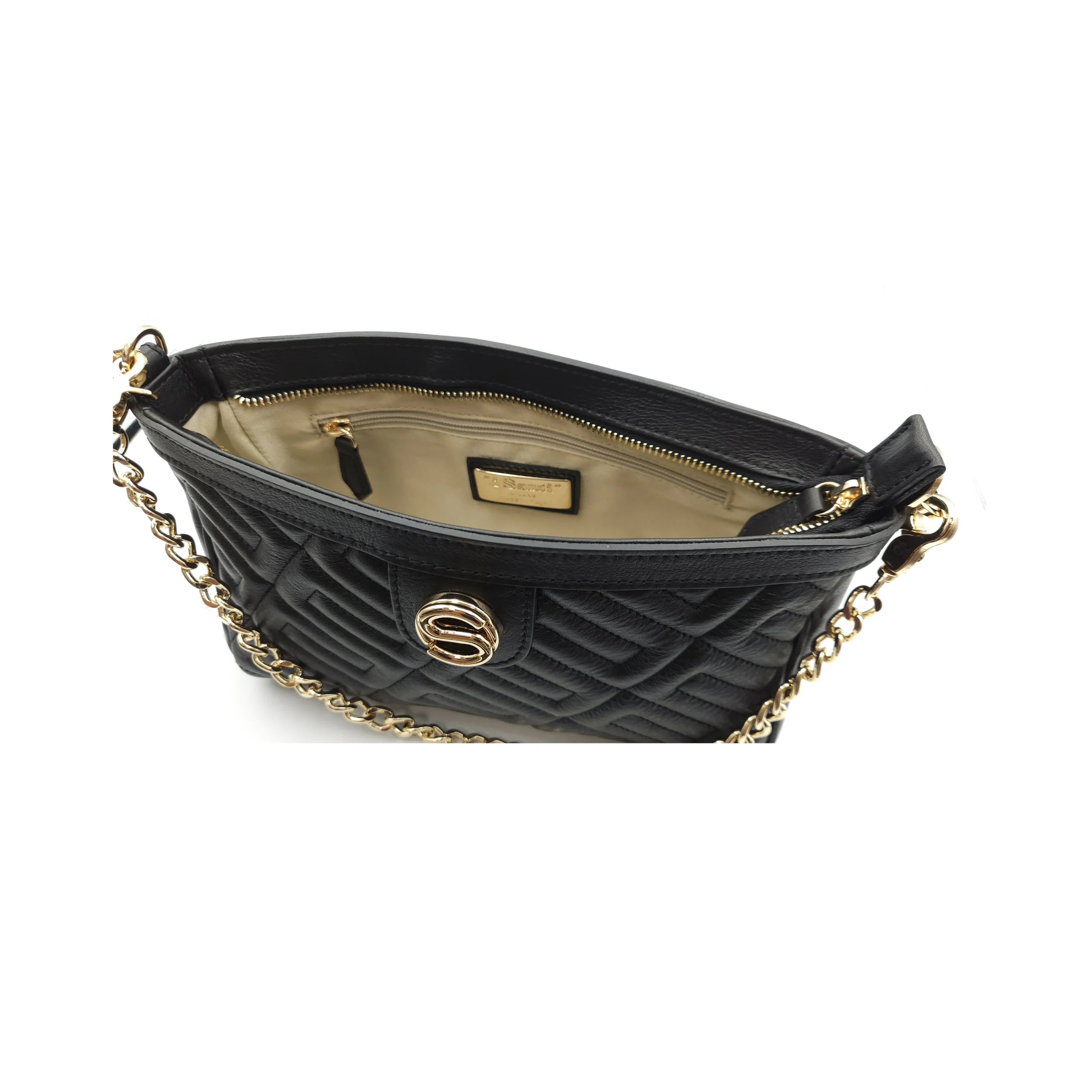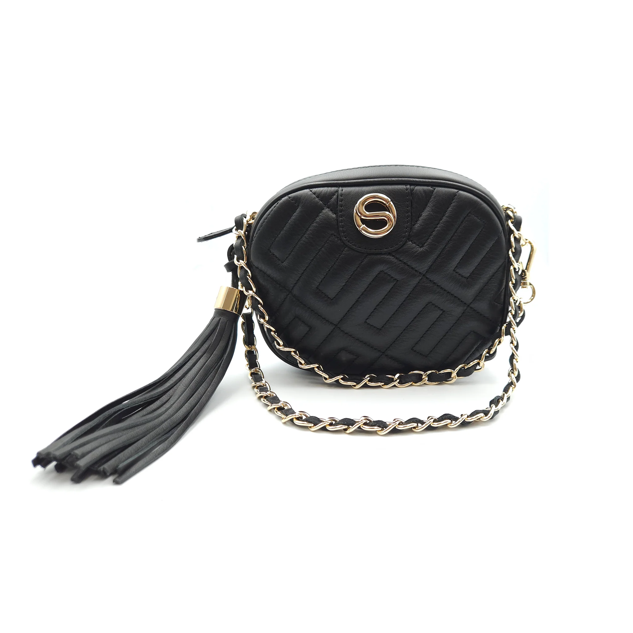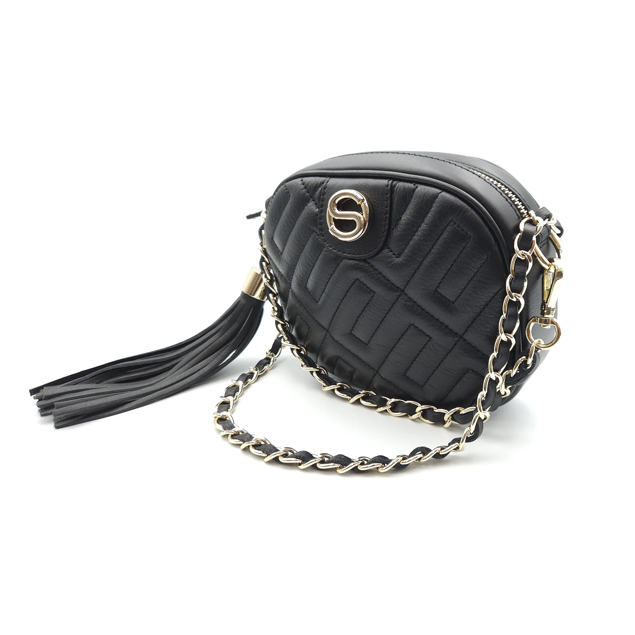 Piccola ma scenografica: la mini a tracolla con maxi nappina che illumina ogni look serale. Perché ti piacerà Corpo in vera pelle morbida con trapuntatura geometrica a rilievo. Logo “S” de “i Santi” in metallo dorato, dal carattere iconico. Tracolla a catena dorata intrecciata con pelle per portarla a spalla o crossbody. Chiusura con zip […]
