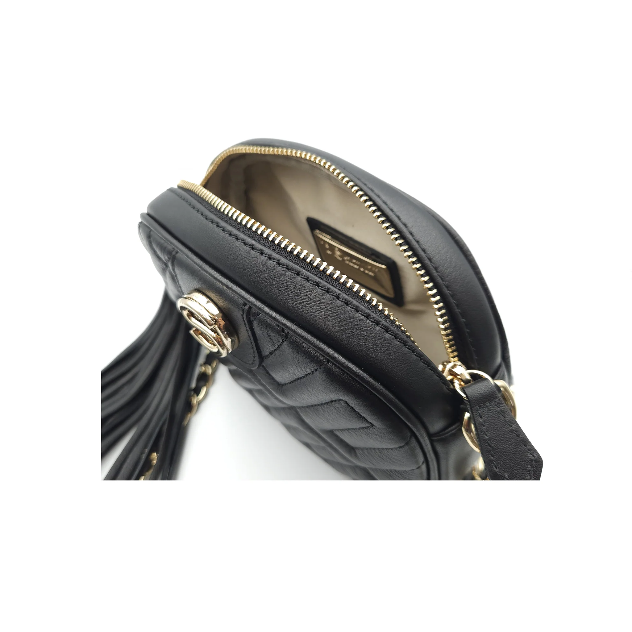 Tracolla a catena dorata intrecciata con pelle per portarla a spalla o crossbody.