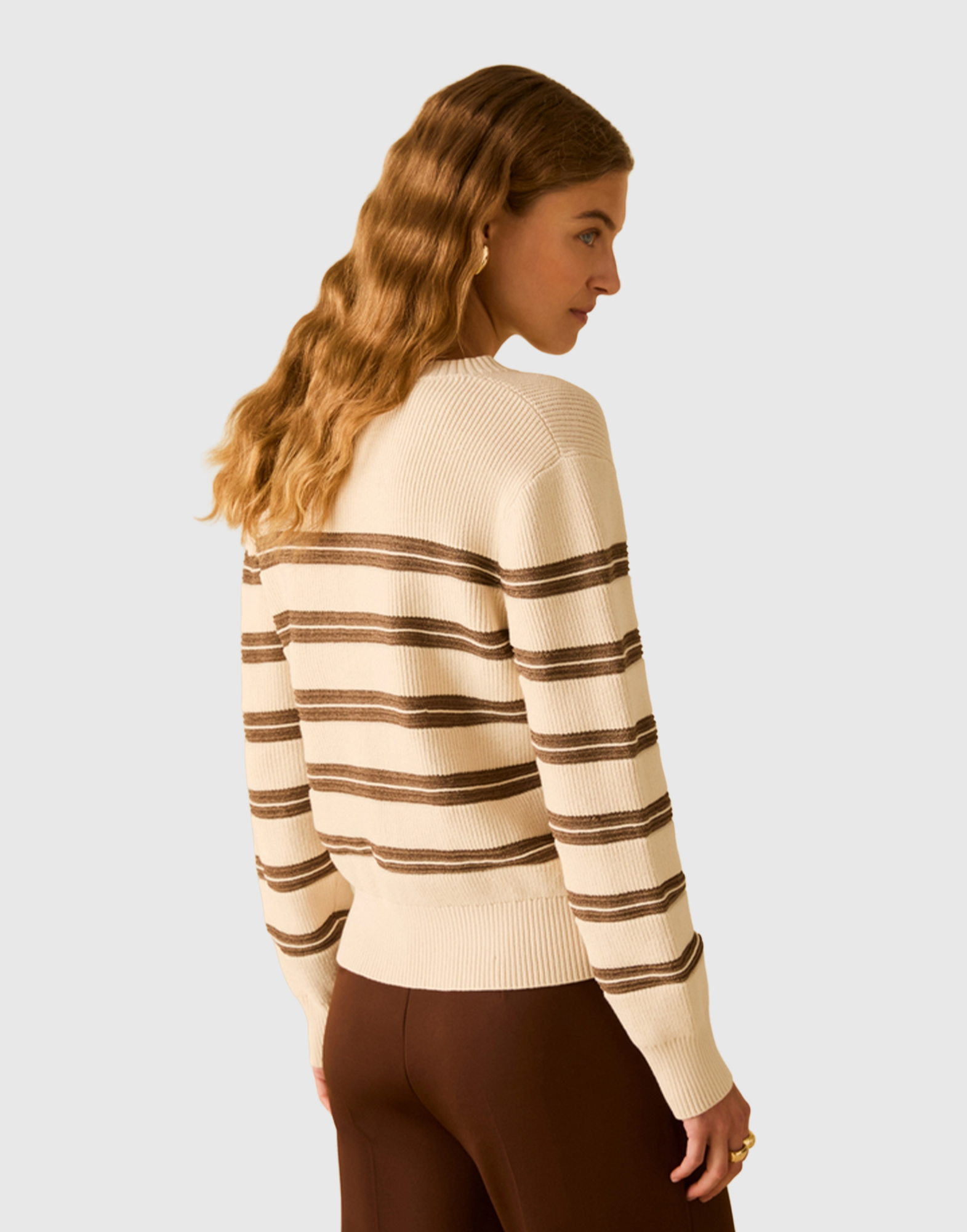ELISABETTA FRANCHI Maglia in viscosa con bande lucide colore MILK/COFFE