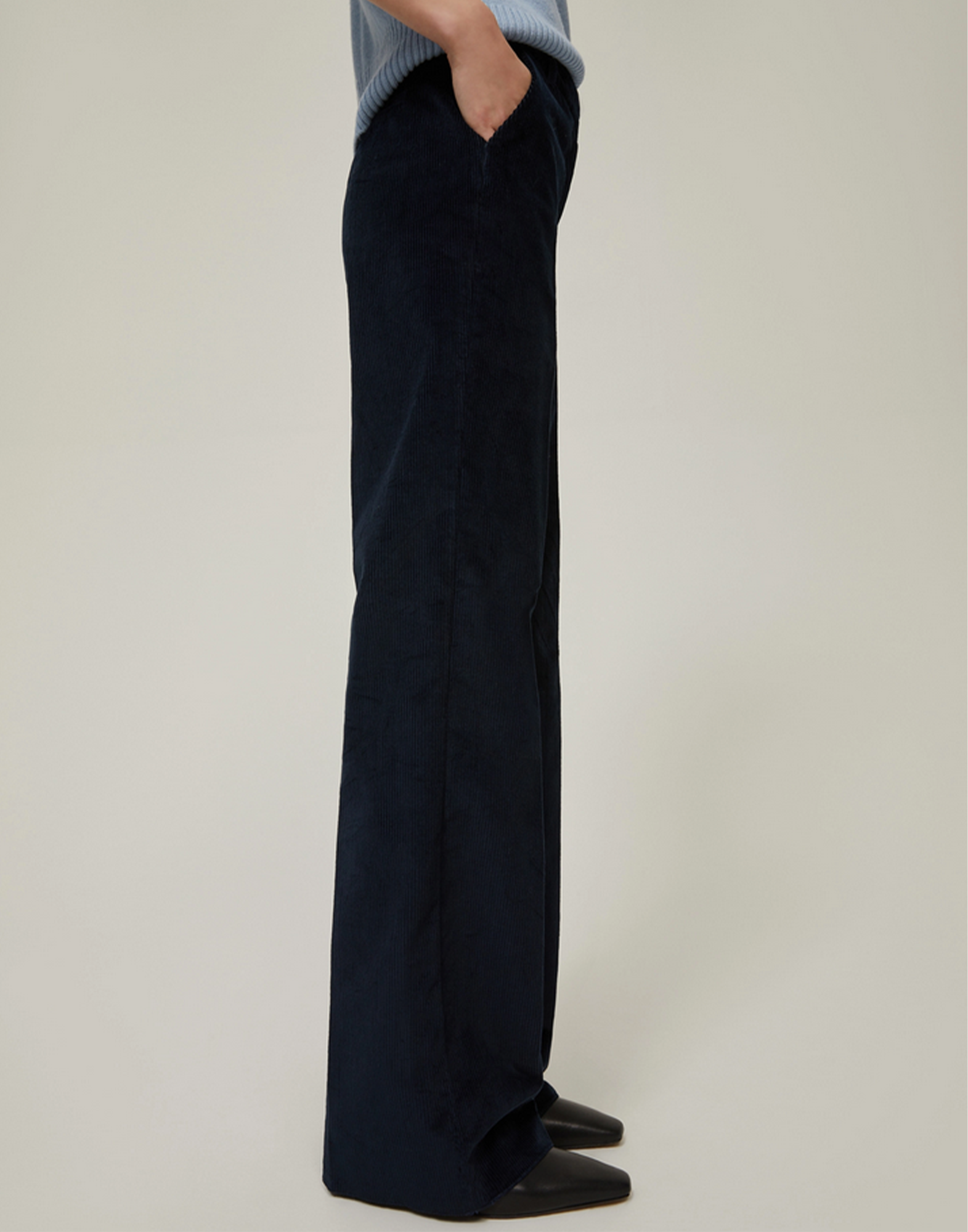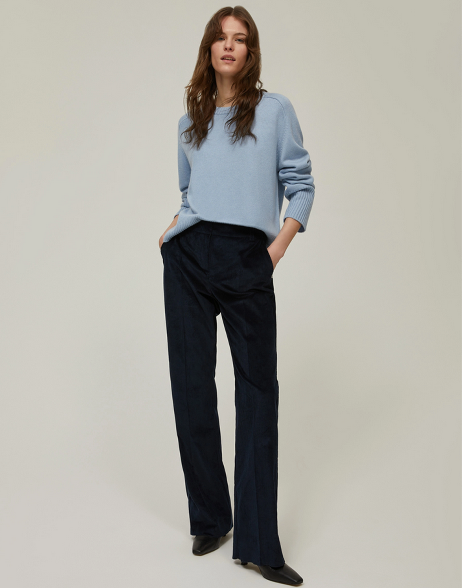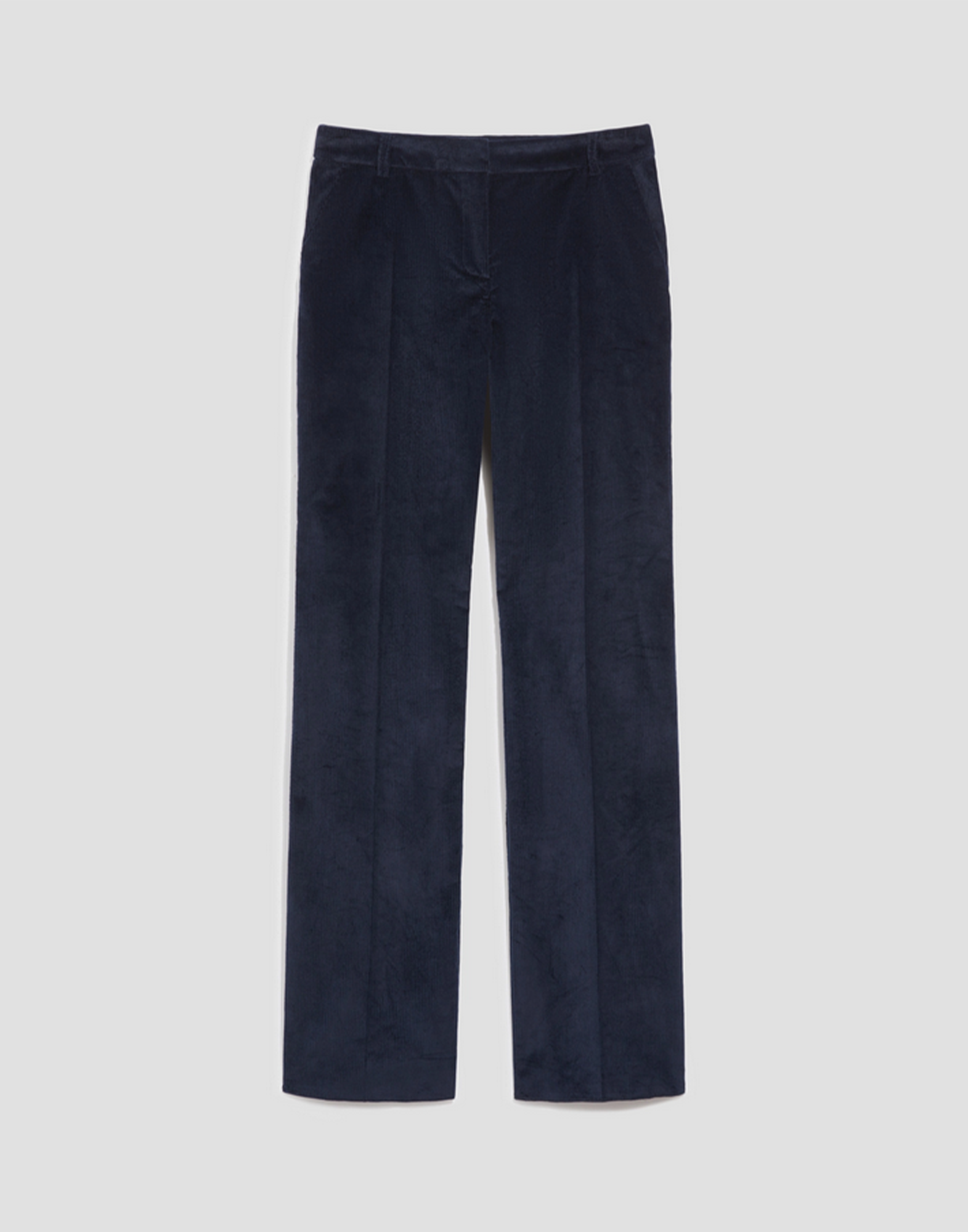 Il carattere autentico del velluto a coste scopre una nuova attitudine cittadina grazie al fit aggiornato di questi pantaloni, base perfetta per creare infiniti look. DETTAGLI: Velluto a coste in blend di cotone stretch Gamba diritta e morbida Vita regolare con passanti Piega stirata Tasche alla francese sul davanti, a filo sul retro Chiusura nascosta con gancio e zip Blazer e giacca coordinati in collezione