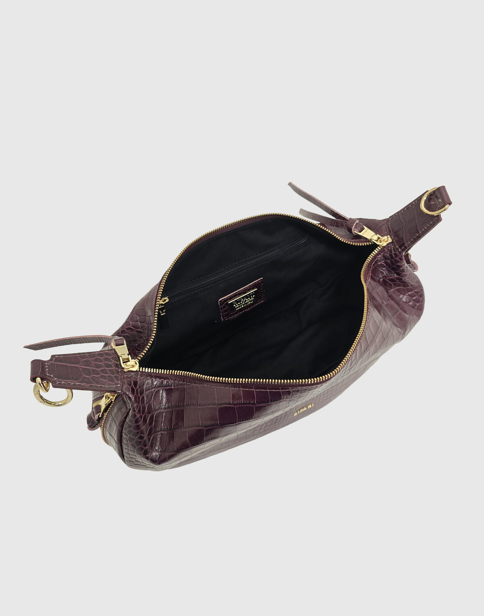 Borsa a mano con tracolla regolabile, chiusura zip, taschino interno con zip, tasca portacellulare, vera pelle effetto cocco, accessori oro chiaro DIMENSIONI: ALTEZZA: 15 CM LUNGHEZZA: 35 CM PROFONDITA’: 13 CM