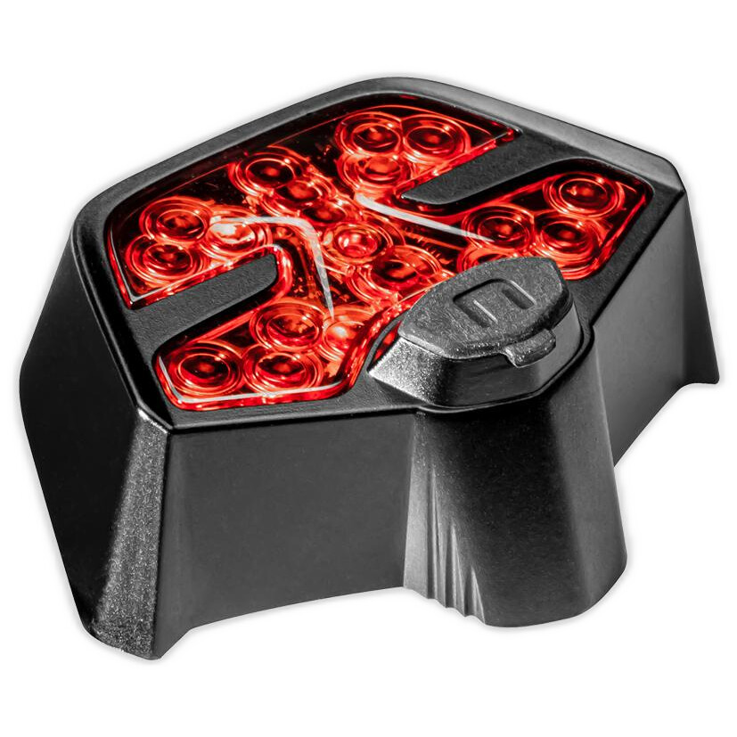 Sistema a LED montato sul retro del casco che si attiva durante decelerazioni brusche rilevate tramite accelerometro triassiale. Offre anche funzione luce di posizione fissa e modalità intermittente per aumentare la visibilità.