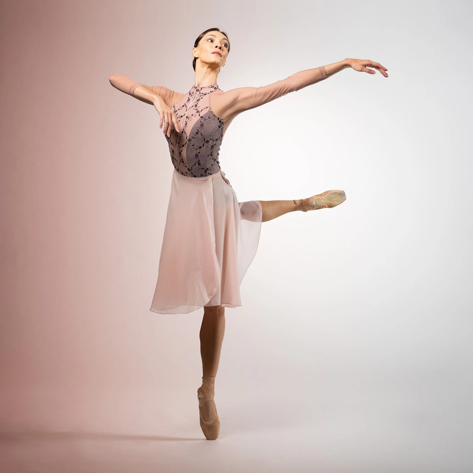 From the pages of Aleksandr Puskin’s poem to John Cranko’s choreography to music by Tchaikovsky, Onegin is undoubtedly one of the world’s best-loved ballets. Her main character, Tatiana is among the most challenging ballet personalities, as she represents a woman with a tormented life characterized by deep inner growth. The delicate sleeves and back opening of this leotard represents her youthful and romantic fantasies.