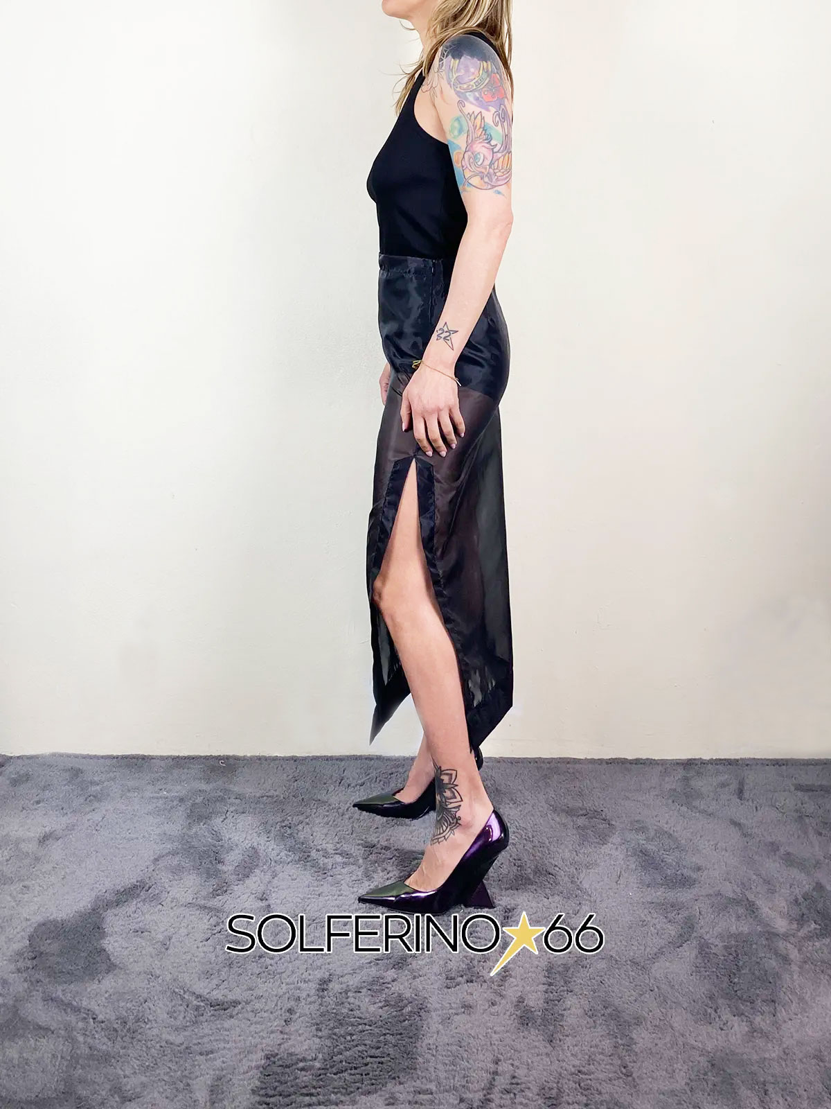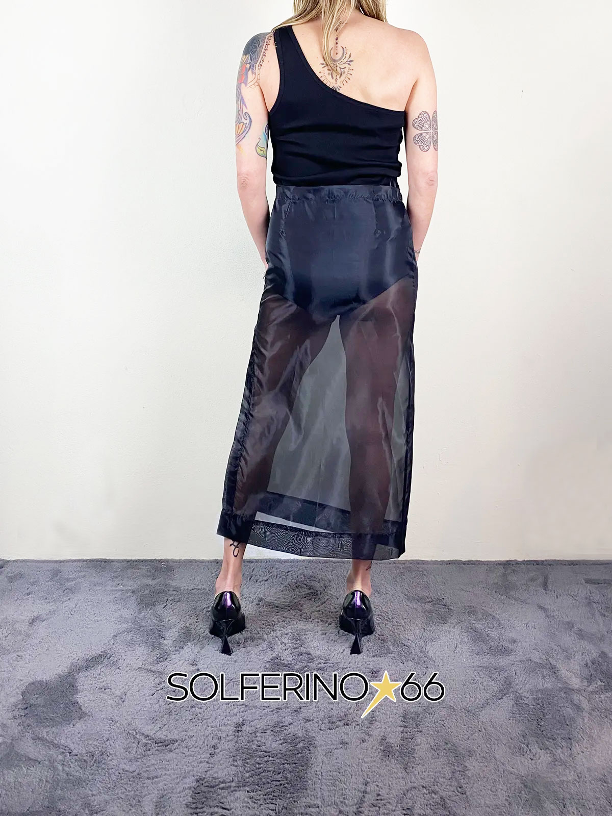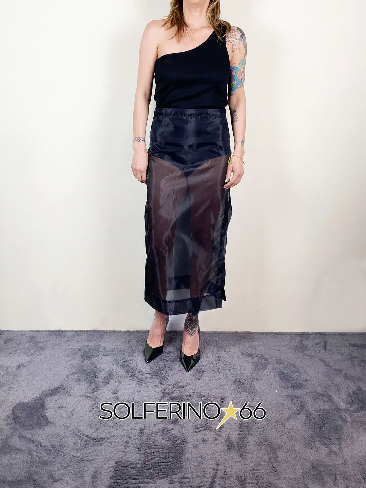 Longuette in organza fit a matita con spacco.