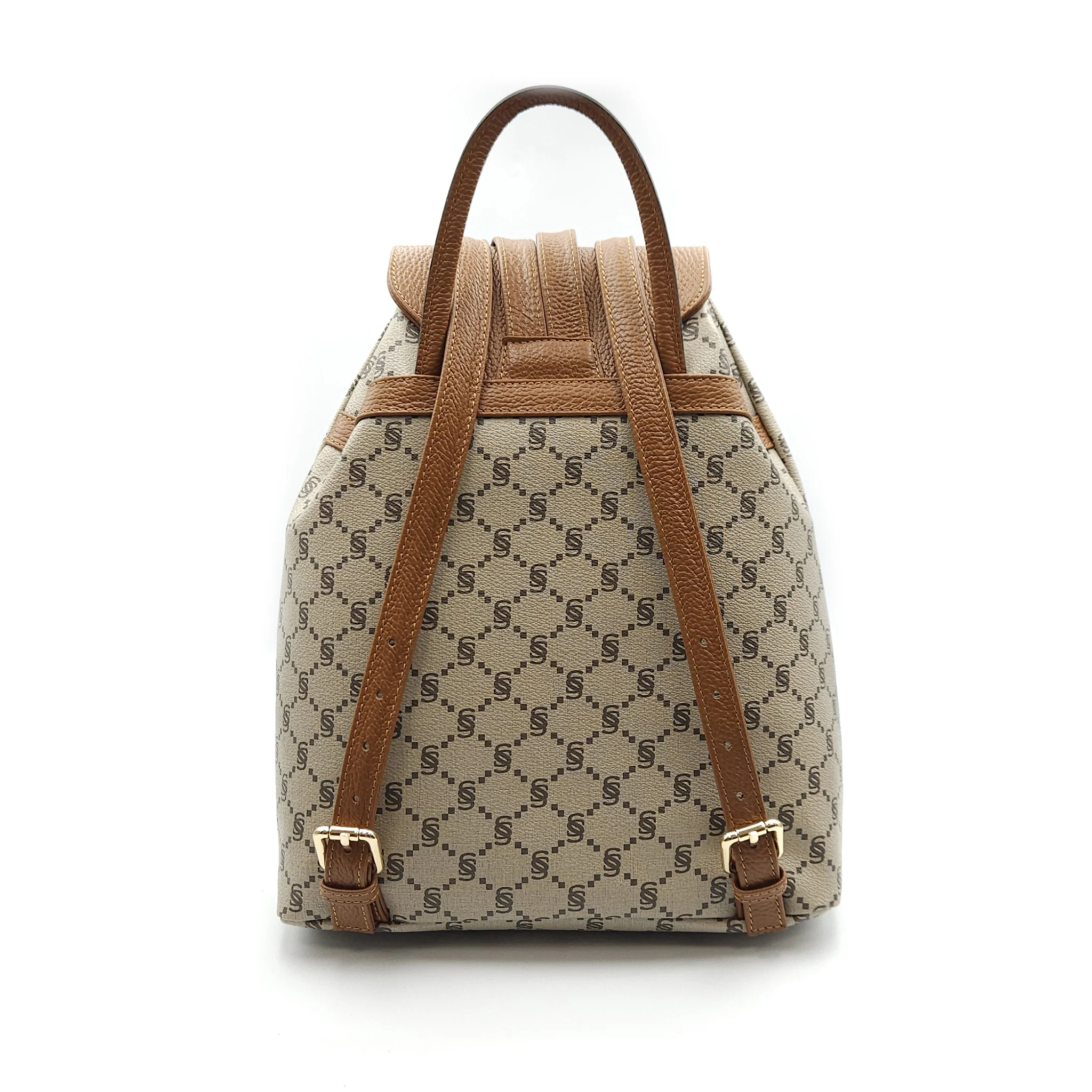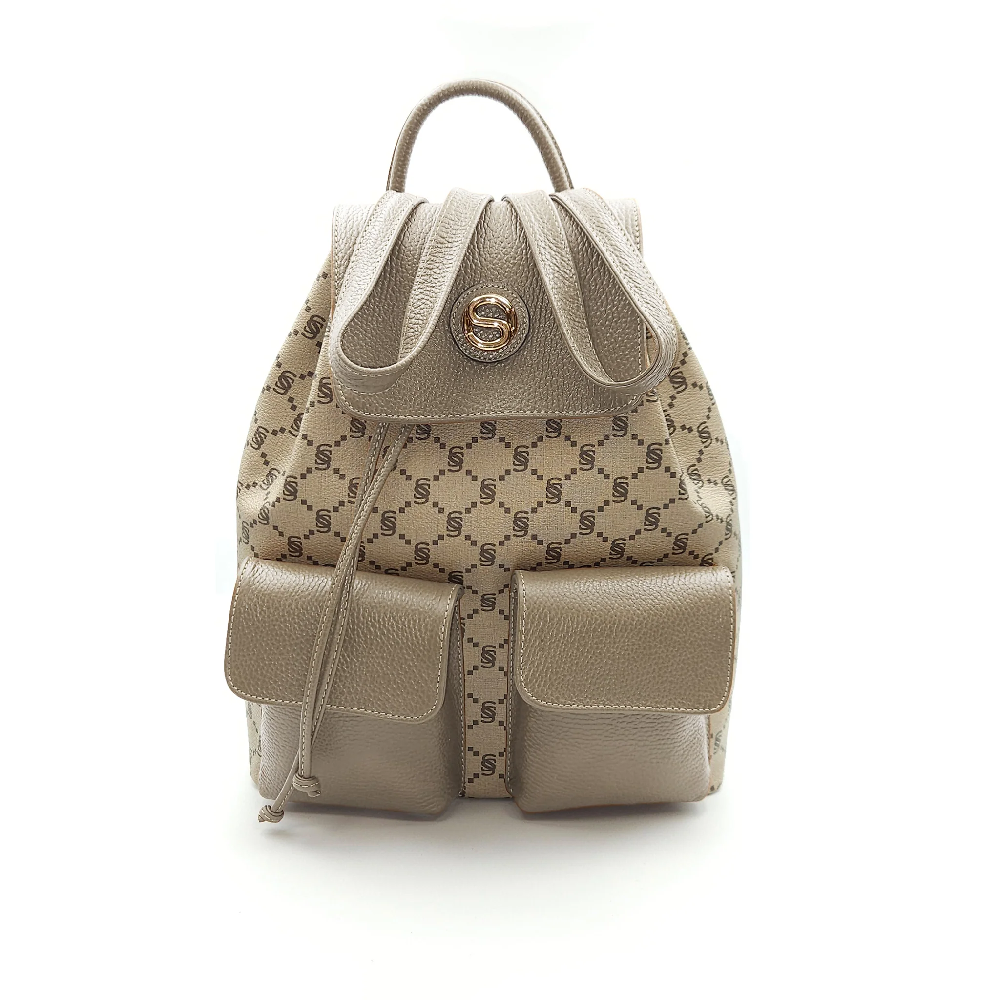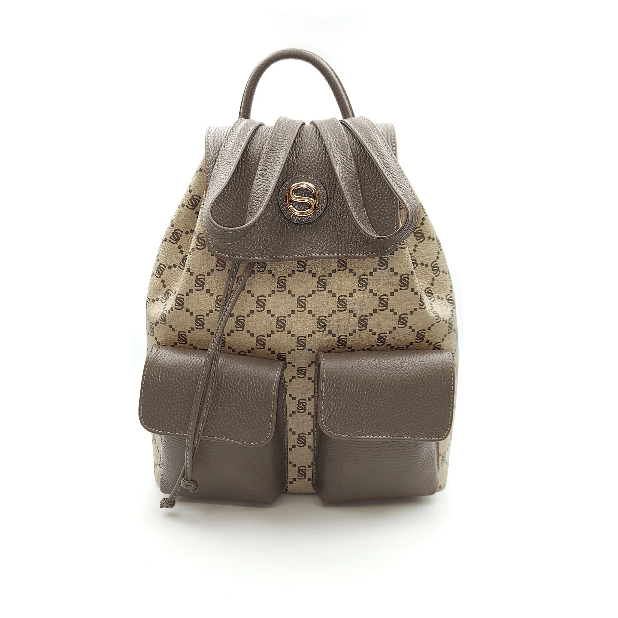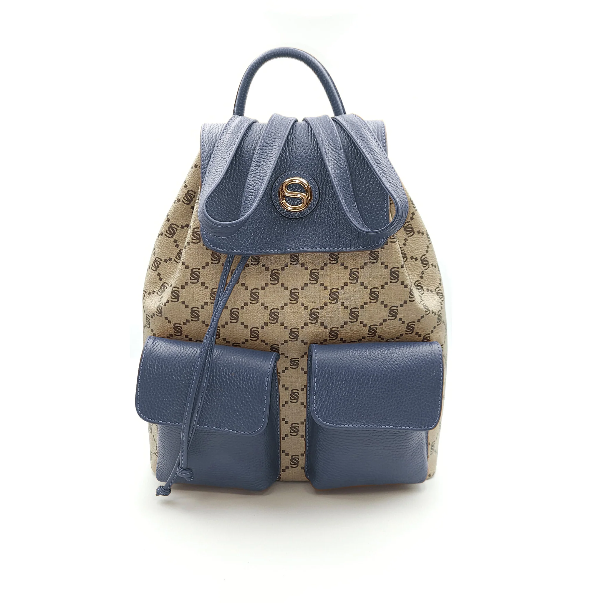 • Esterno: canvas stampato โ€œSโ€; finiture, patta, manico, tasche e profili in vera pelle.